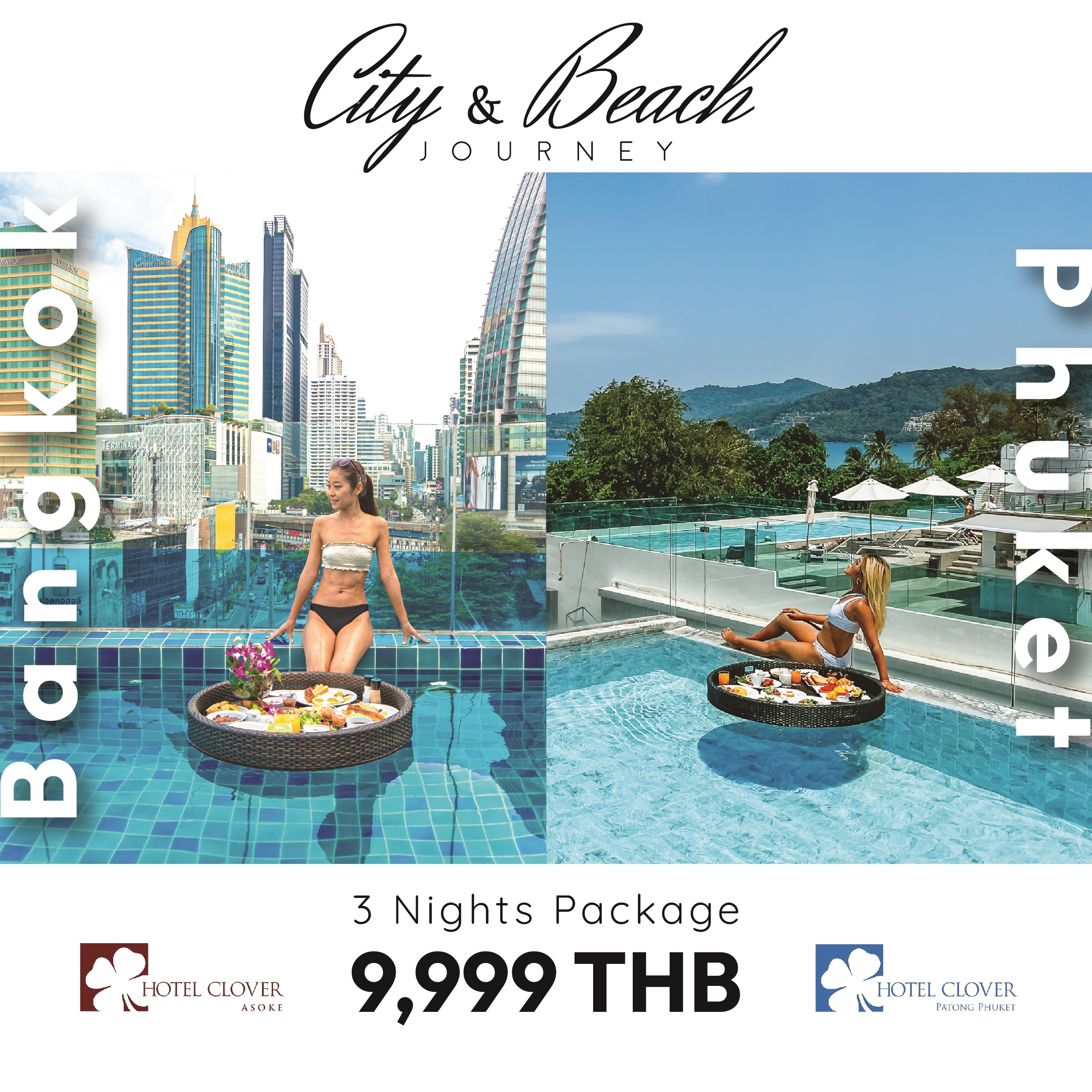 Enjoy a tropical escape with 1 night in Bangkok at Hotel Clover Asoke and 2 nights in Phuket at Hotel Clover Patong.
